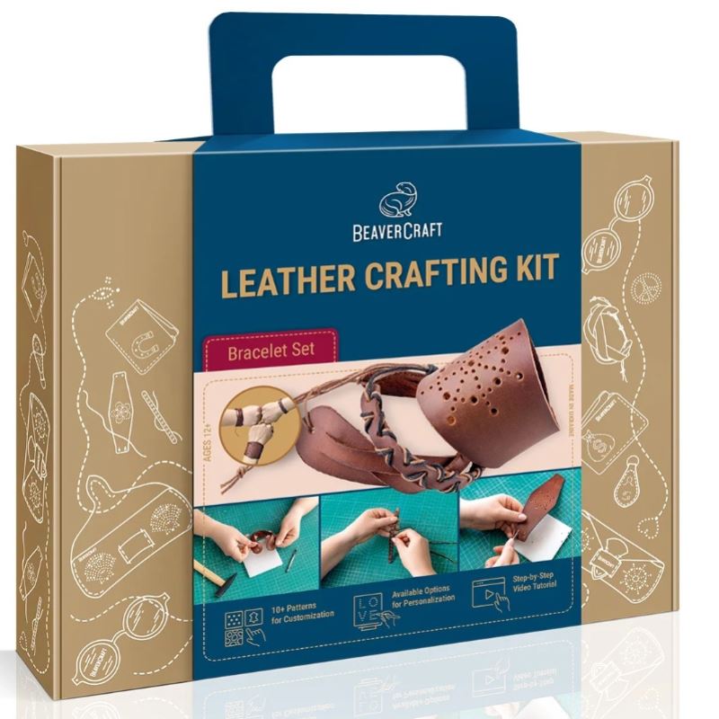 The kit will teach you how to use pricking irons, tie a sliding knot, “braid”, and treat leather. With the tools provided, you can make your bracelets completely unique, or choose from the many decoration designs we’ve created.